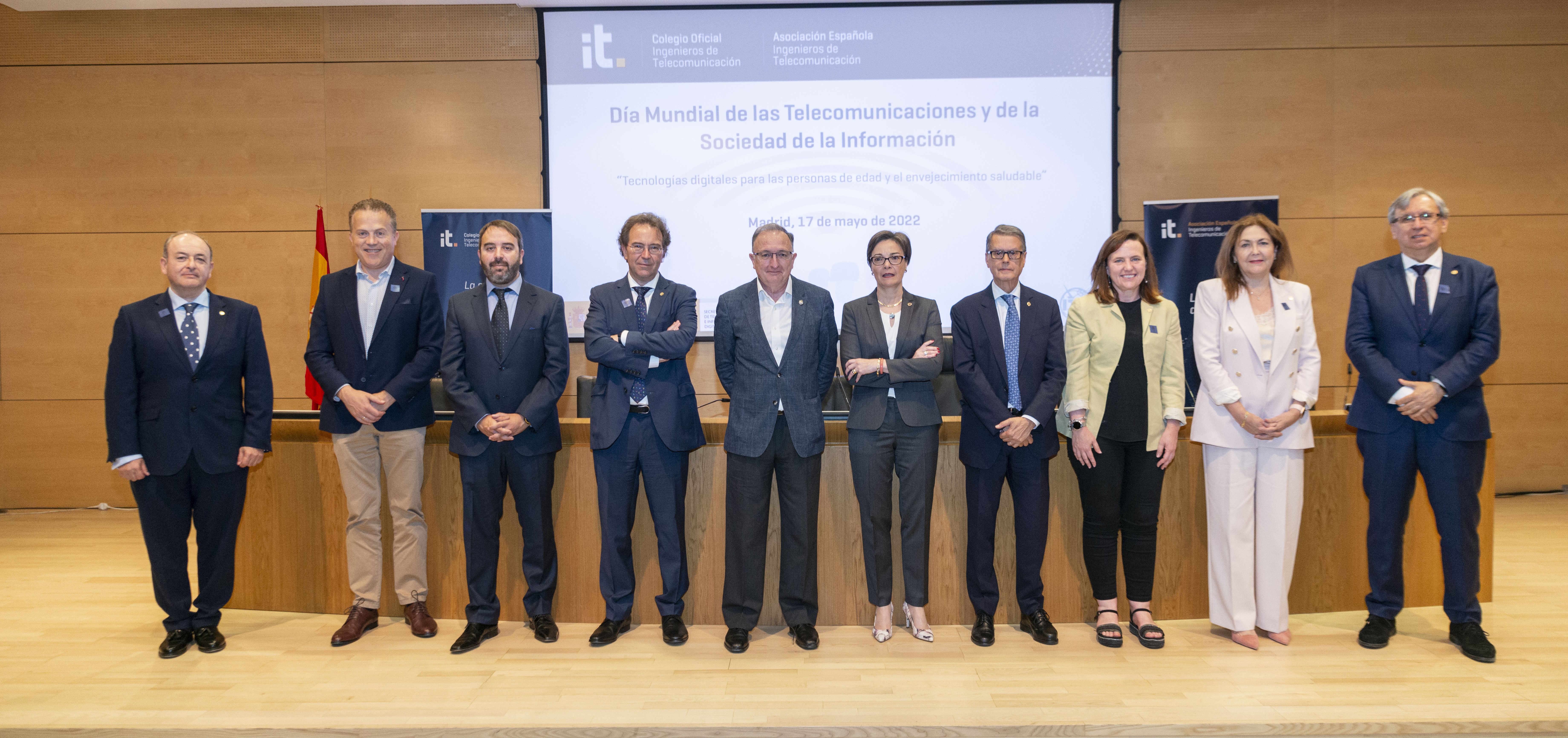 Madrid. 18 mayo 2022. El Colegio Oficial de Ingenieros de Telecomunicación, la Asociación Española de Ingenieros de Telecomunicación, junto a otras organizaciones, celebraron ayer 17 de mayo el Día Mundial de las Telecomunicaciones 2022 en la sede de la Secretaría de Estado de Telecomunicaciones e Infraestructuras Digitales. “Tecnologías digitales para las personas de edad y envejecimiento saludable” ha sido la temática abordada en este año.