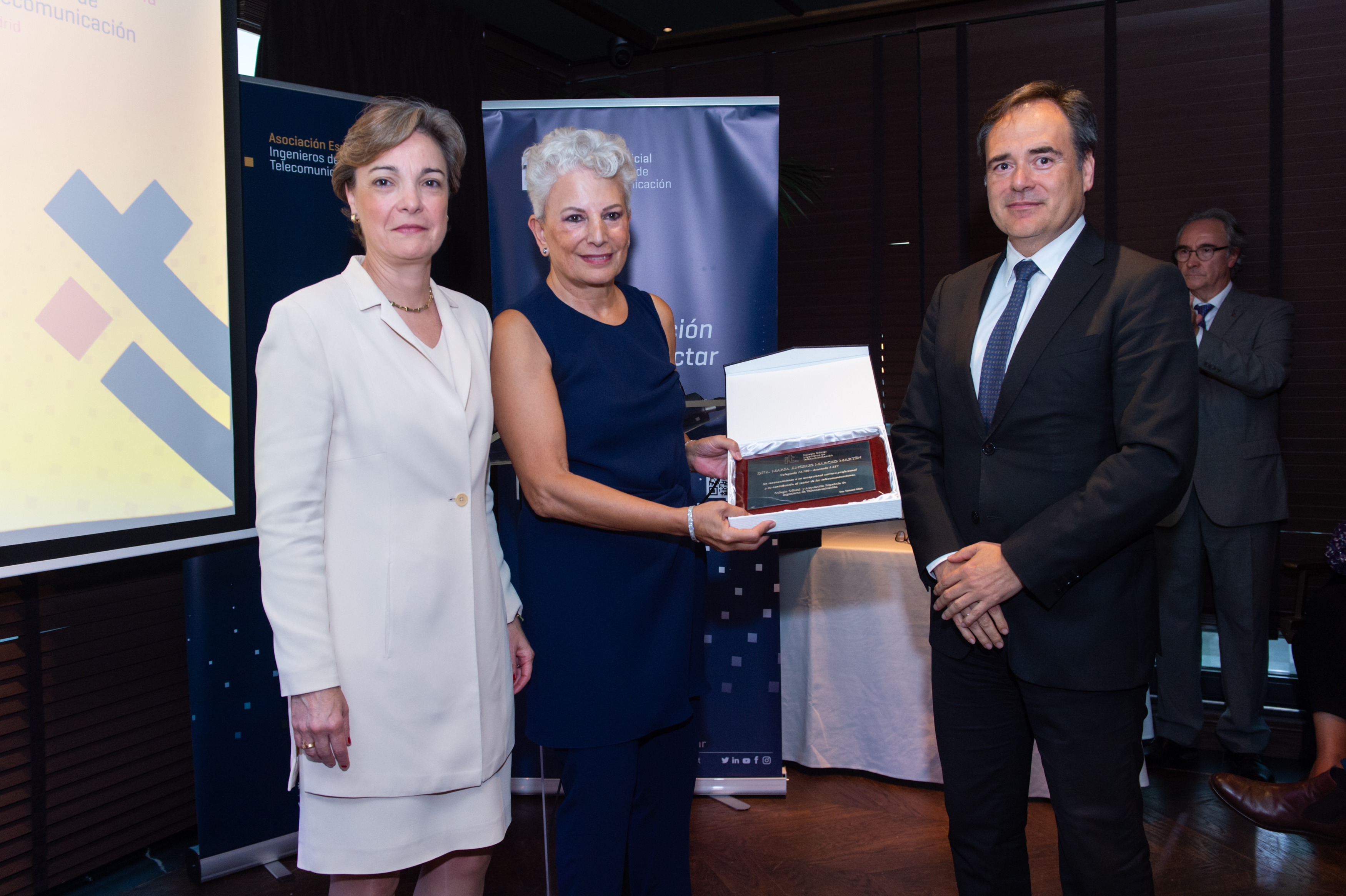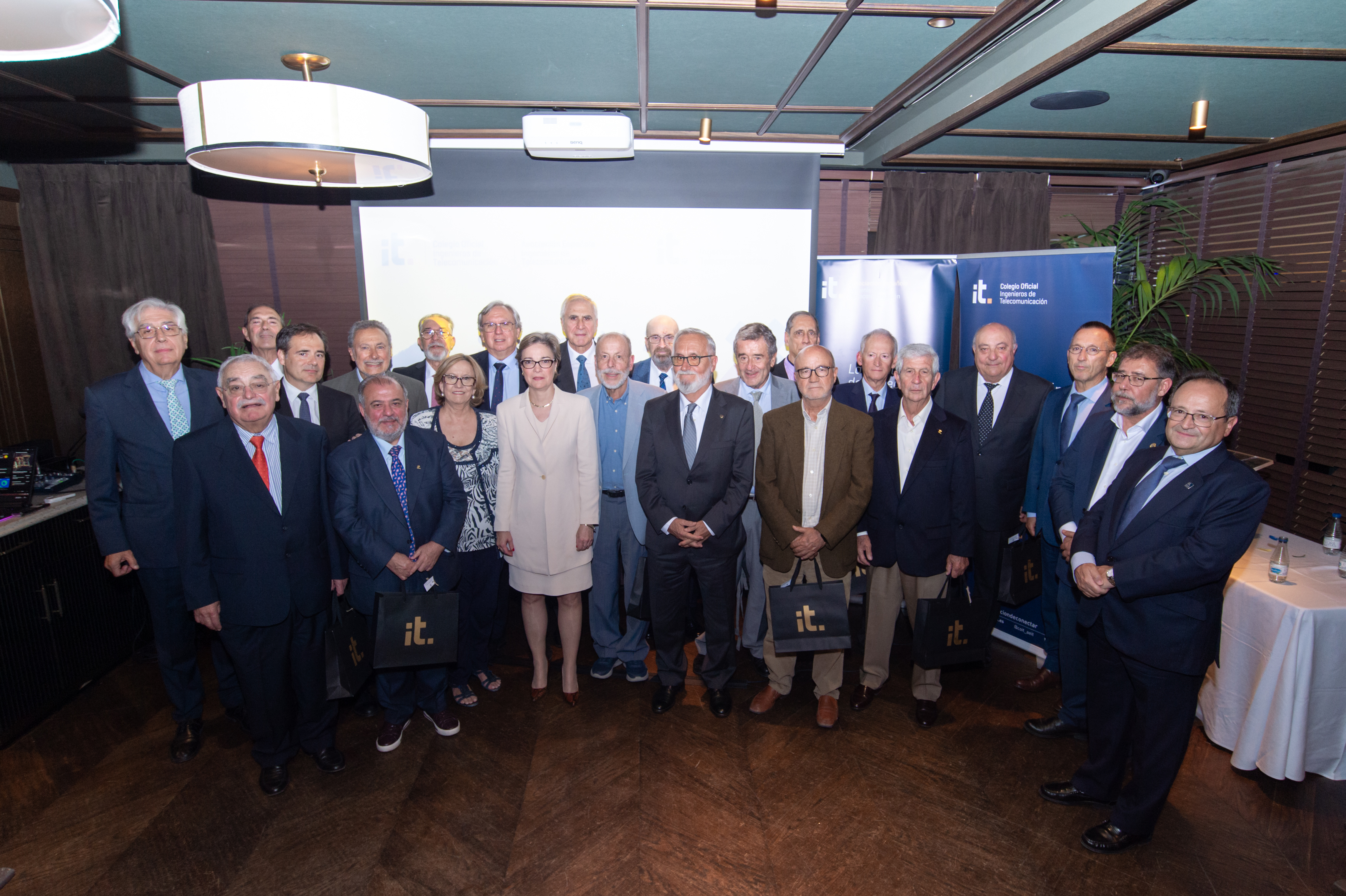 La ceremonia también rindió homenaje a 33 colegiados y asociados que han cumplido más de 50 años en la profesión, reconociendo su contribución y compromiso a lo largo de sus carreras. Estos veteranos de la ingeniería de telecomunicación fueron honrados con la entrega de insignias y diplomas en un emotivo acto.