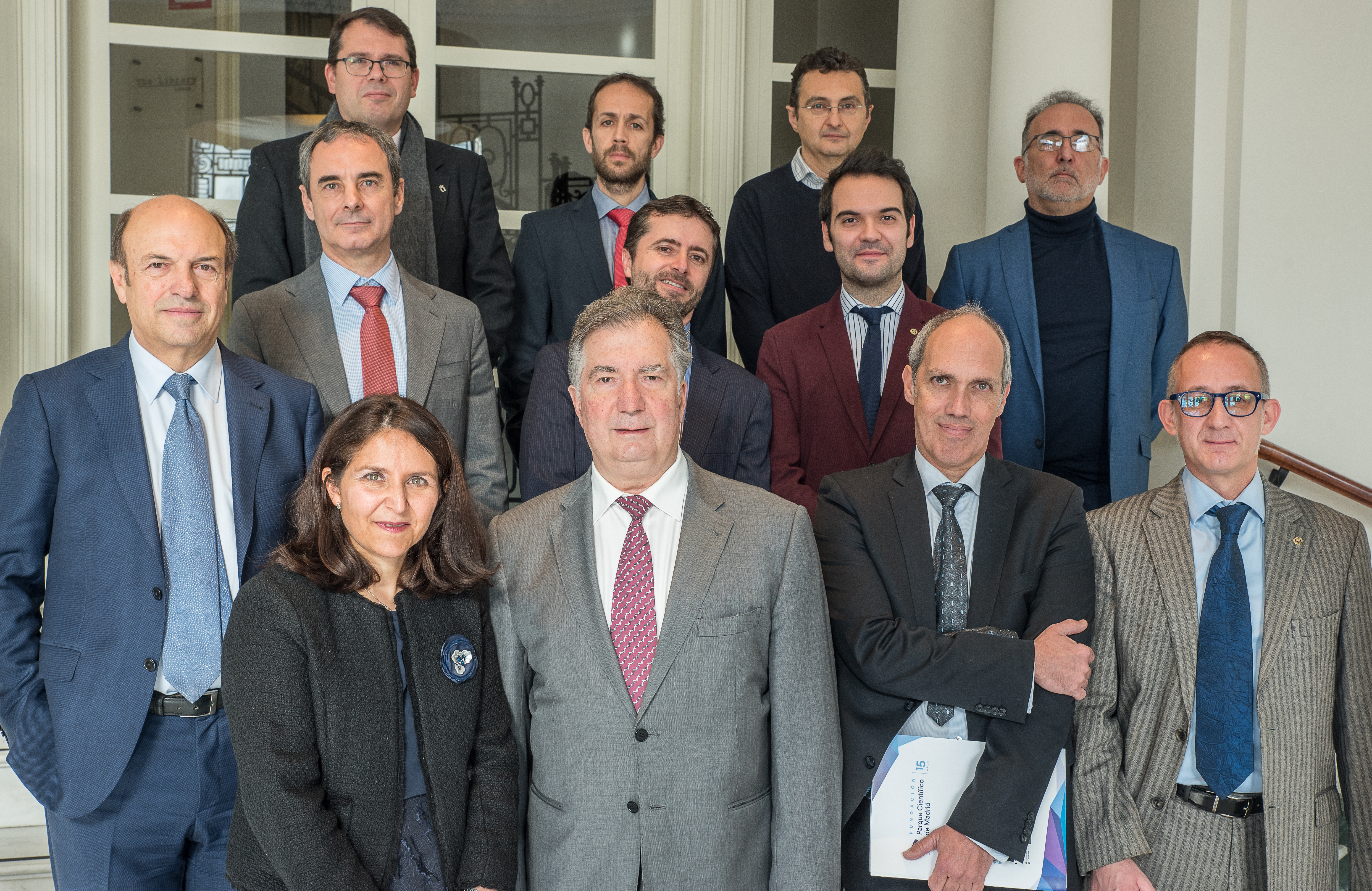 Asistentes a la jornada de trabajo del Programa Copernicus, organizada por COIT/AEIT. (De abajo-arriba, izquierda derecha) -Fila 1: Javier Simó, Ramon Martinez, Vicente Boria -Fila 2: Alfonso Calero, Alberto Glez. salvador, Carlos Romero, Jesús Izquierdo y José María Martinez -Fila 3: Andrea Pérez Carro, Antonio Arozarena, Gustavo Madrazo y Gustavo Bermejo. |