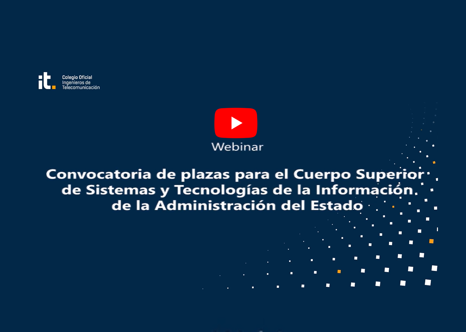 Ante la excelente aceptación del webinar que tuvo lugar el pasado 19 de junio sobre la noticia de la convocatoria de plazas de empleo público de interés para ingenieros de telecomunicación, queremos compartir con todos nuestros colegiados el contenido del mismo.