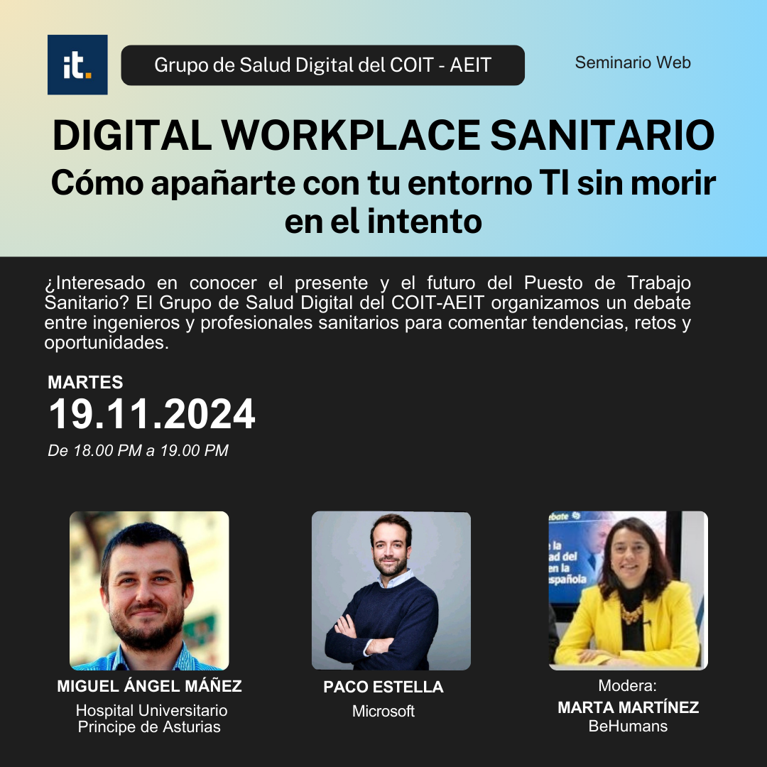La transformación digital supone una oportunidad en la búsqueda de la sostenibilidad de nuestro sistema de cuidados de la salud, con beneficios directos e indirectos potenciales en la calidad asistencial, la eficiencia operativa y los resultados en salud. Esta transformación está cambiando, entre otros, el entorno de trabajo de los profesionales sanitarios (HCPs) —desde médicos y enfermeras hasta personal administrativo y de gestión—, y es esencial comprender cómo estas herramientas digitales impactan sus funciones, los procesos y, por supuesto, la relación con el paciente. Los profesionales de la salud necesitan el apoyo de ingenieros, entre ellos los de telecomunicación para proveerles de soluciones y herramientas que les ayuden a aportar valor. La colaboración multidisciplinar entre ingenieros, gestores y personal clínico supone un reto en el que vamos a profundizar con nuestros invitados en el webinar.